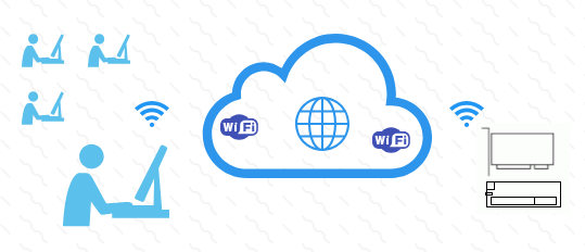 In global communication mode the computer system(s) are connected to one WiFi network and the NET2 device is connected to another WiFi network.